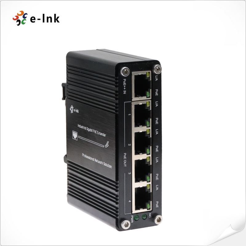 Industrial 1-Port 802.3at PoE+ เป็น 4-Port 802.3af/at Gigabit PoE Extender
